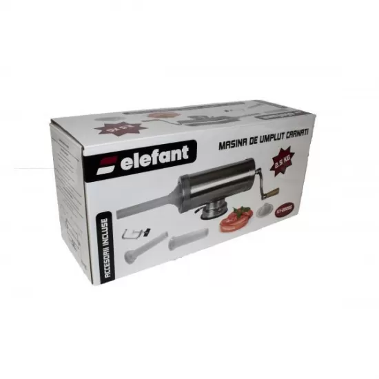 Fără TVA:462,81 lei Aparat umplut Carnati Elefant ML-S5 cu capacitate de 5 kgPozitionat vertical construit in totalitate din inox pentru umplerea carnatilor de diferite g..