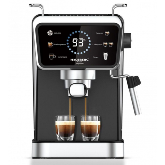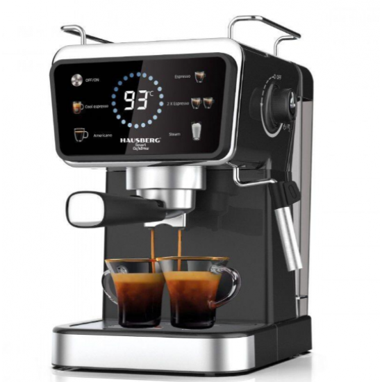 Espressor 2 in 1 HAUSBERG HB-3730IN, Hot & Cold, 20 bari, 1350 W, 1,5 L, Protectie la Supraincalzire si Suprapresiune, ERP, NTC, PID, Timer, Display, Spumare, Cafea macinata si capsule