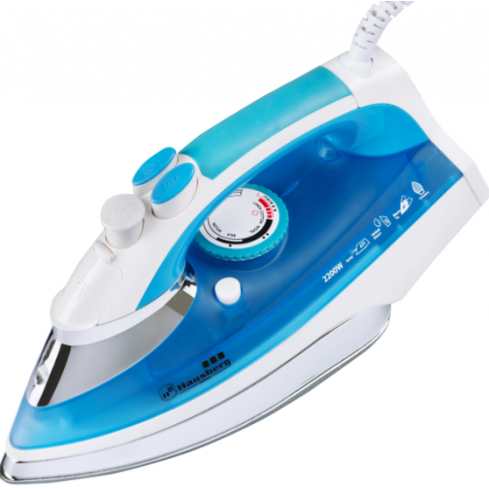 Fier de calcat Hausberg HB-7806BL, talpa ceramica, jet de abur 16,7g/min, abur pe verticala 25g/min, sistem antipicurare, sistem autocuratare 2200W