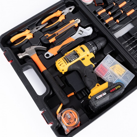 Masina de gaurit si insurubat (Bormasina) cu percutie, 110 piese, 36 V, cu 2 acumulatori si incarcator