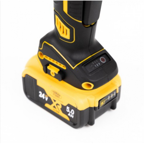 Desi este un flex cu acumulator nu trebuie sa-ti faci griji. In pachet sunt doua acumulatoare de 24V 5A care iti vor asigura puterea necesara pentru a termina lucrul.