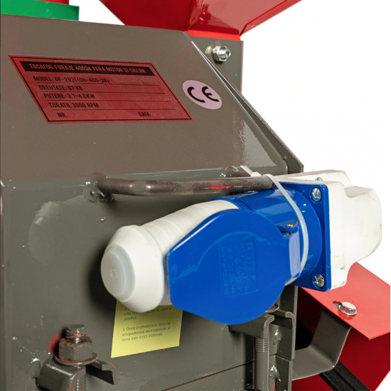Acest tocator se livreaza cu motor 4Kw monofazat inclus, cu controler START/STOP si un set fulie si curea transmisie incluse.