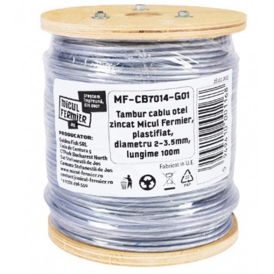 Tambur cablu otel zincat Micul Fermier, plastifiat, diametru 2-3.5mm, lungime 100m