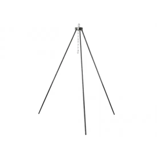 Cu o lungime de 100 cm, trepiedul asigură o înălțime optimă pentru suspendarea ceaunului deasupra flăcărilor, permițând o distribuție uniformă a căldurii și controlul eficient al temperaturii de gătit. Materialul din oțel oferă rezistență la temperaturi ridicate și condiții de utilizare în aer liber, asigurându-ți că trepiedul va rămâne stabil chiar și pe terenuri mai accidentate.