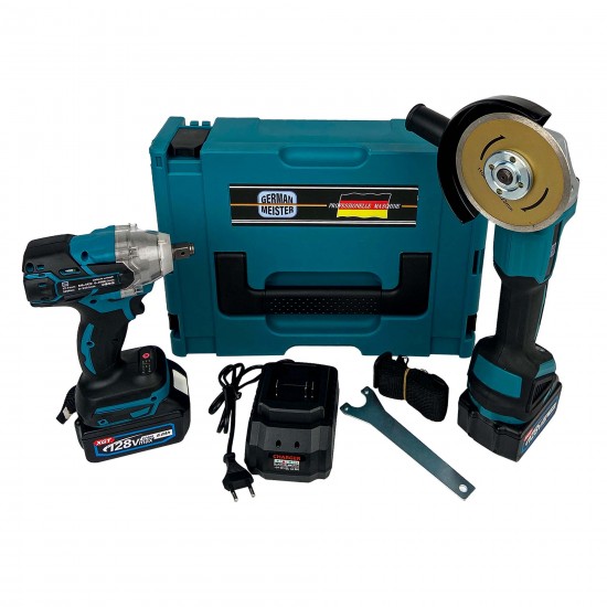 Trusa German Meister Masina cu Impact + Polizor Unghiular 128V, 6Ah, cu 2 Acumulatori